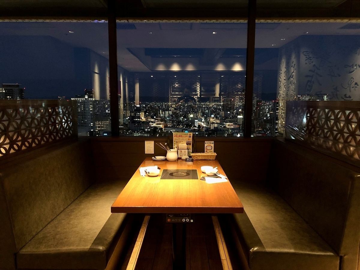 【自慢の夜景が見える席】大阪(梅田)の夜景が絶景♪HEPの赤い観覧車や大阪城が見えます。夜のネオンが星空のように光り輝き幻想的です。